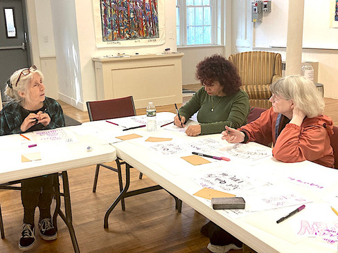 Attendees of an Epistolary Poetry workshop with Valerie Lawson (pictured, in yellow), enjoyed learning a poetry format based on letter-writing, as part of a state-wide WriteME poetry project, on October 5.