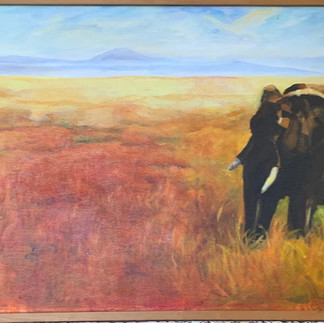 Judy loves animals. She loves watching the birds and animals outside her window … even the neighboring skunks. Creatures are often featured in her artwork. You’ll find birds, cats, and goats amidst her splashes of color, but one of her most impressive animal series was of elephants. She has a special affinity for those lumbering beasts. So much so that she recently adopted one!